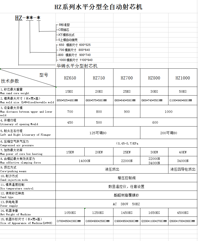 HZ650-B水平分型射芯機