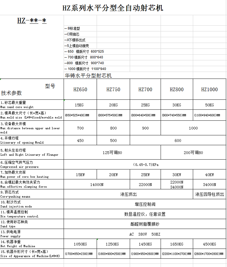HZ650一B型水平分型射芯機